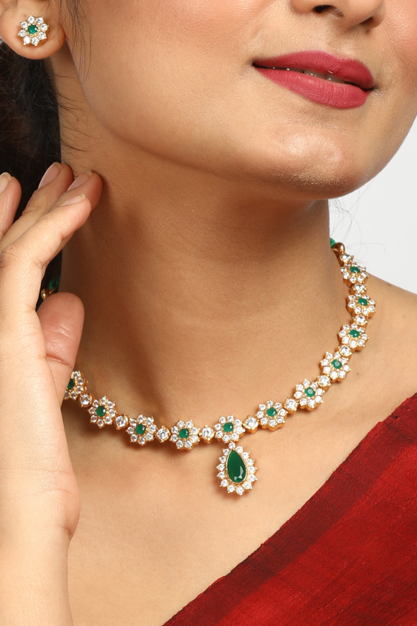 Aaradhaya contemporary 925 silver dual-tone necklace set