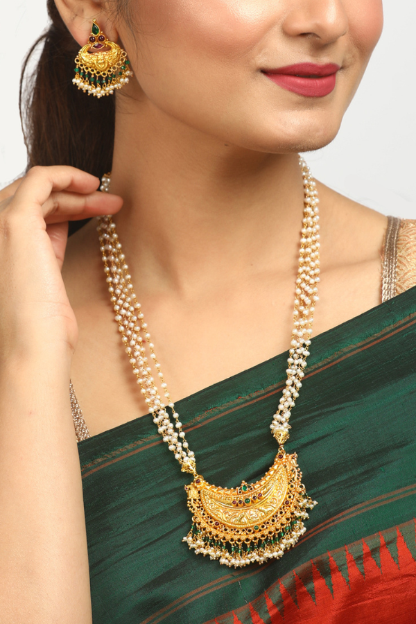 925 silver Maatal Red and Green stones-Bharatanatyam jewelry