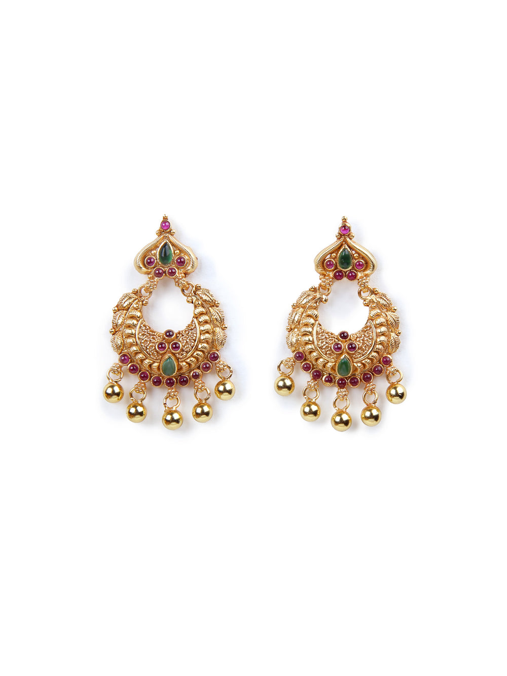 Peacock Chandbali pendant and earring - 925 silver gold polish