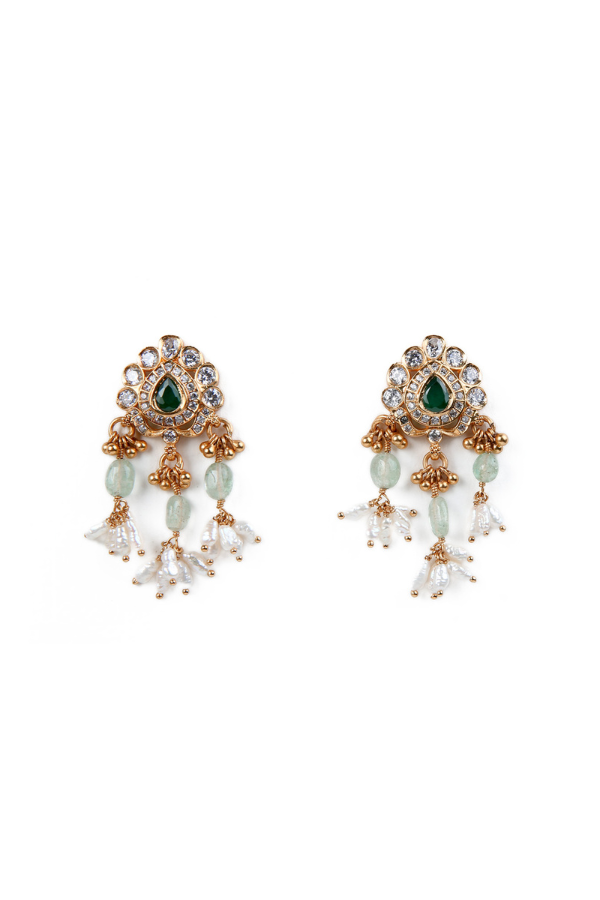 Material: 925 silver (Gold polish), white zircon, green emerald, red kemp, rice pearl, Strawberry quartz beads.