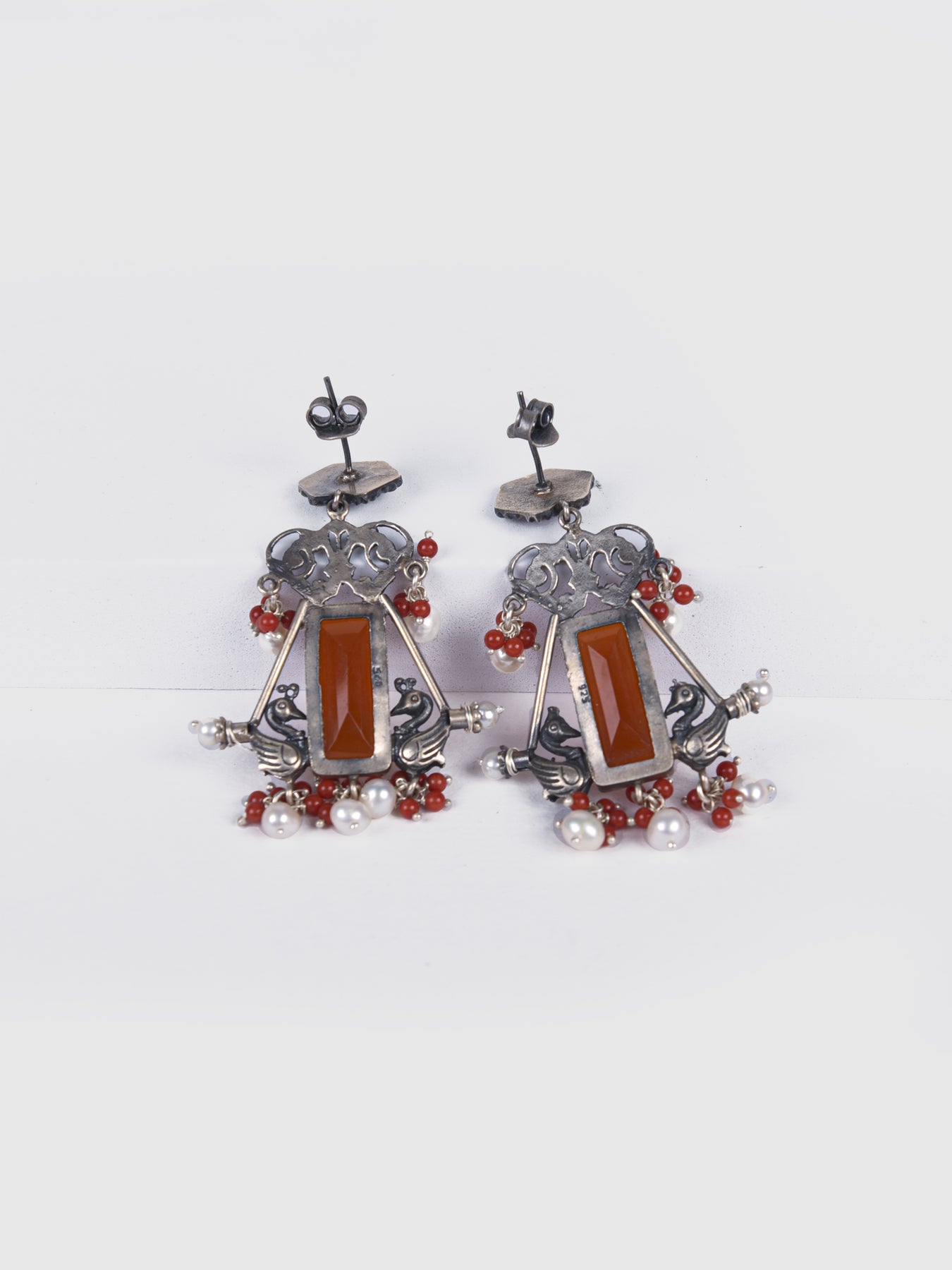 Material: 925 silver (oxidized), Carnelian orange gemstone, red beads, pearl.