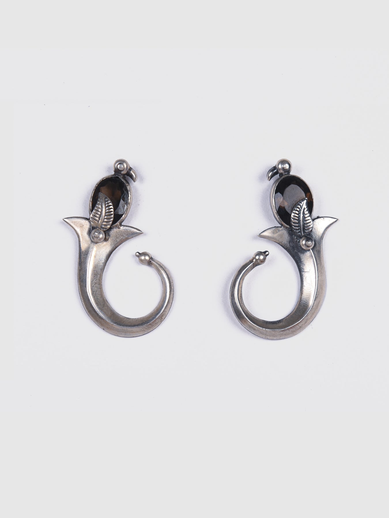 This stunning oxidized 925 silver earring showcases a delicate lily flower-inspired design, beautifully adorned with a semi-precious orange kyanite. The intricate craftsmanship and antique finish add to its elegance, making it a perfect accessory for traditional and contemporary outfits alike.