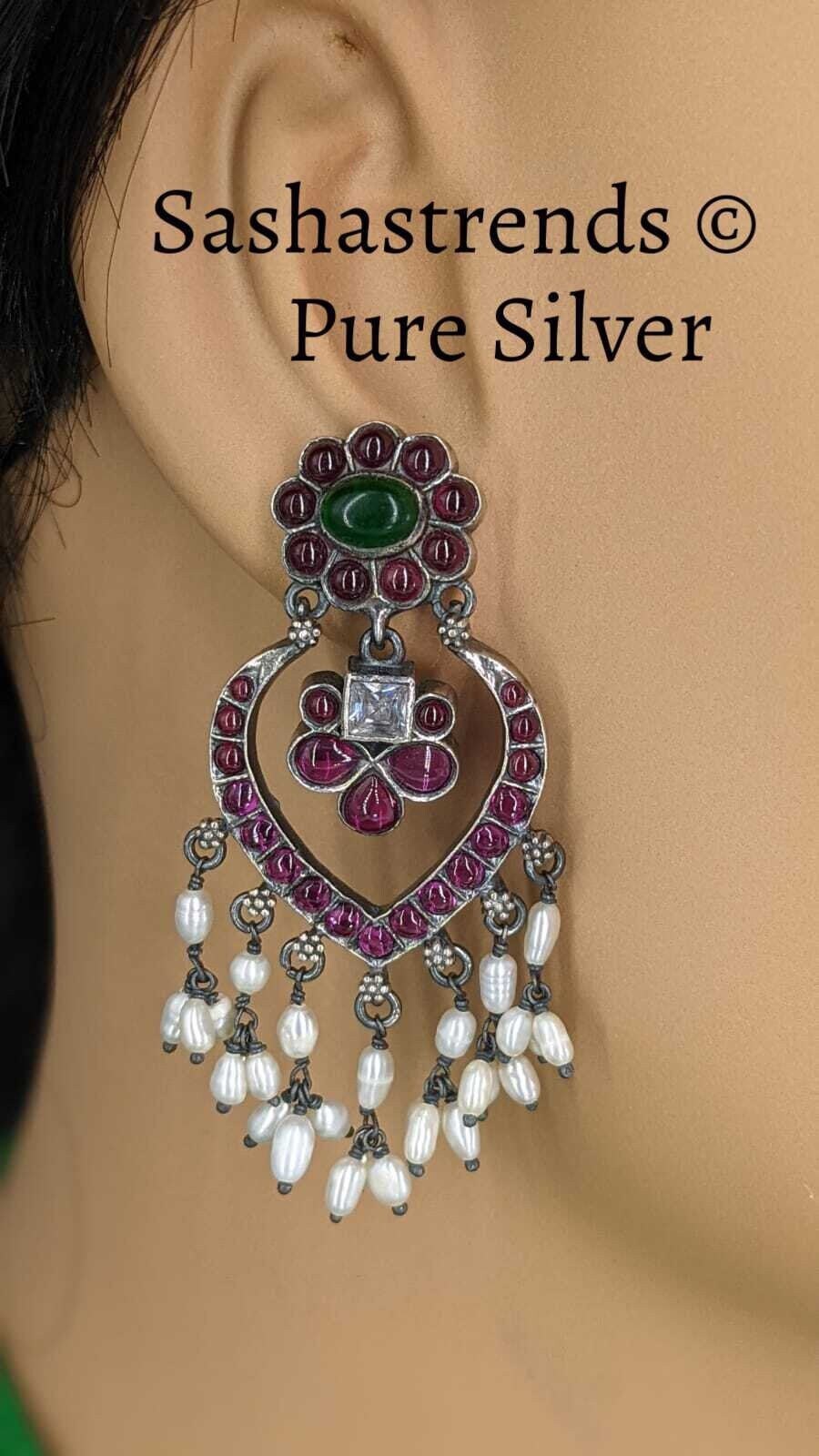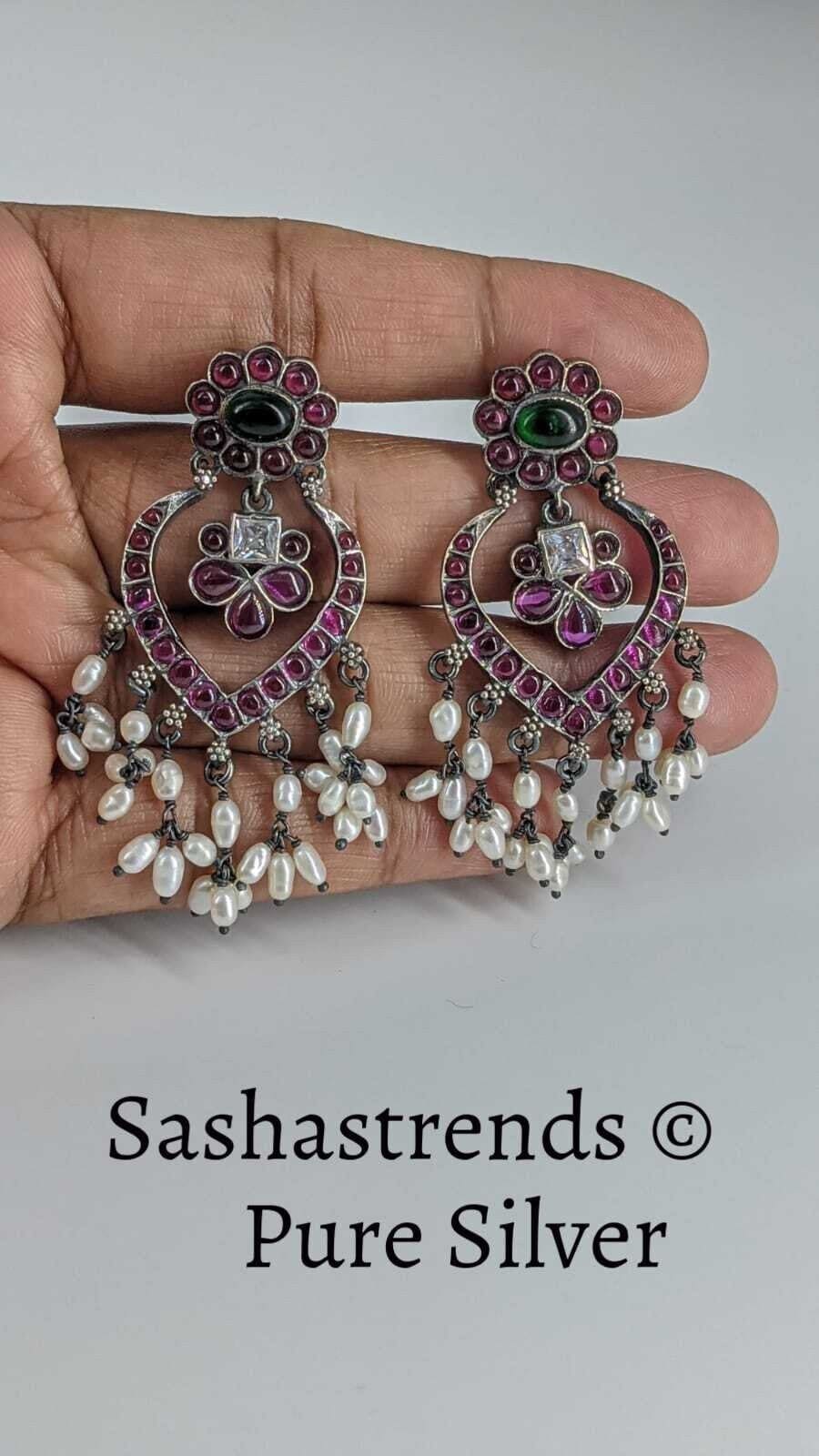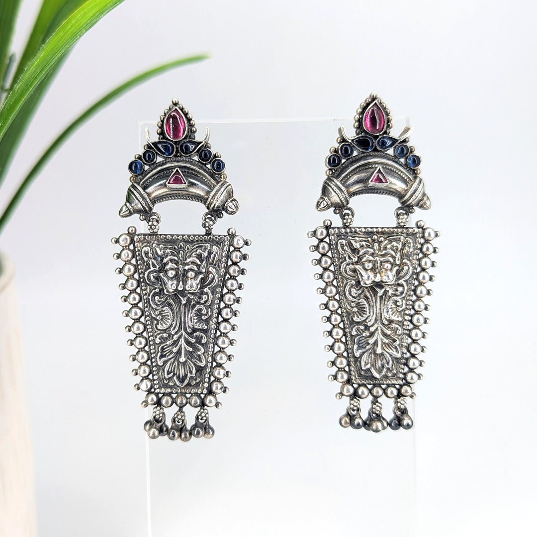Tansh Jhumka - 925 silver oxidized - Earrings