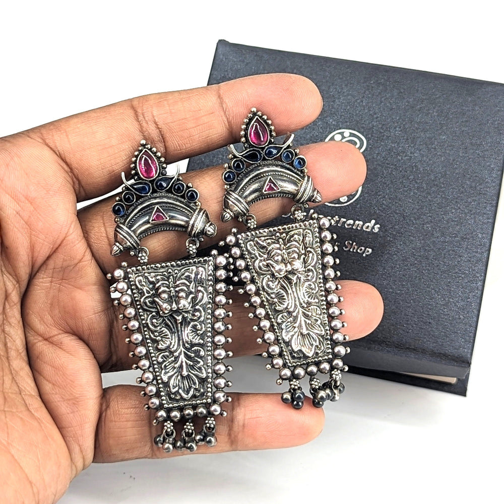 Saanvi Stud-925 silver (oxidized)-Earrings