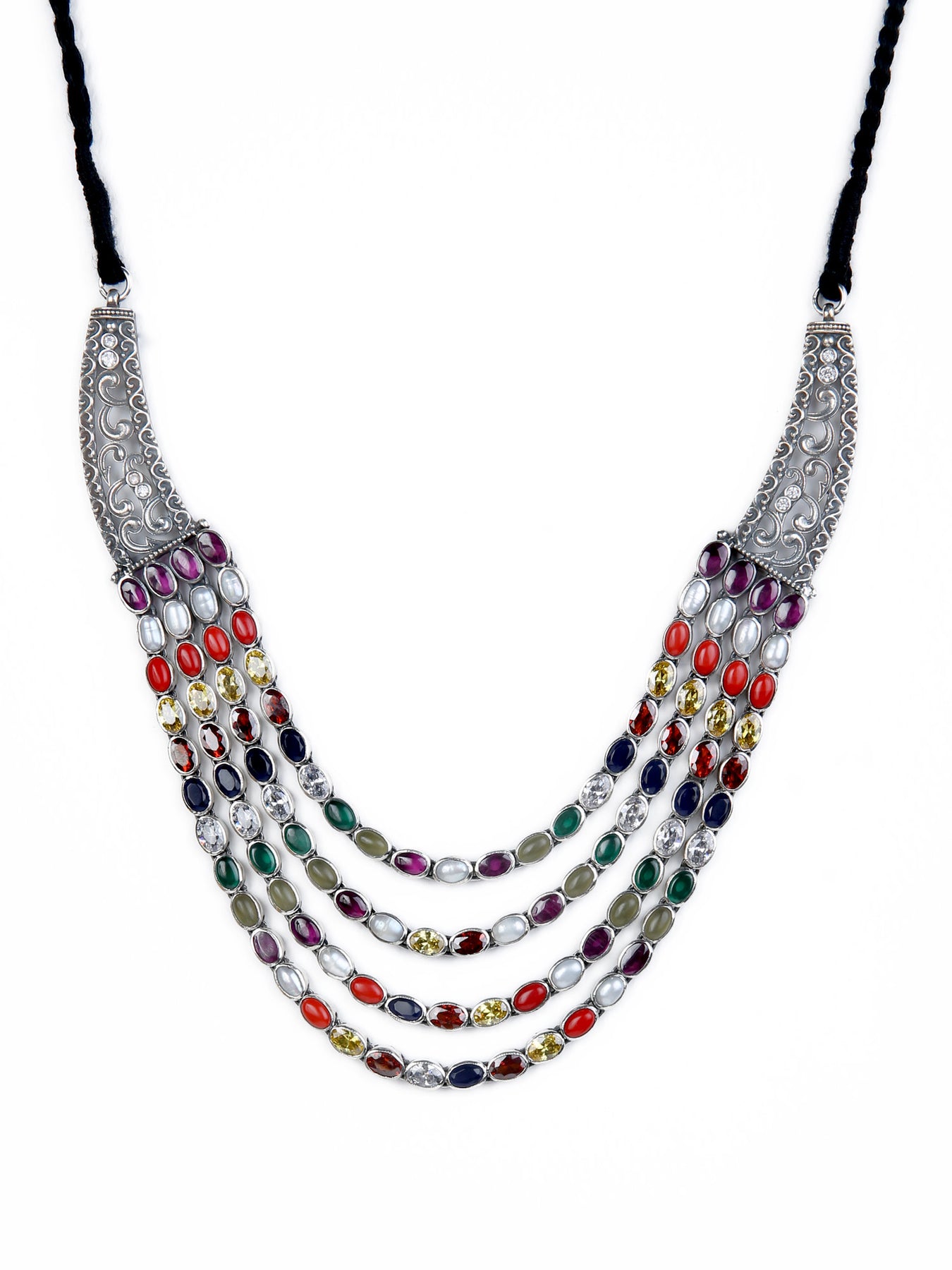 Ajitha Navarathna Necklace - 925 oxidized silver