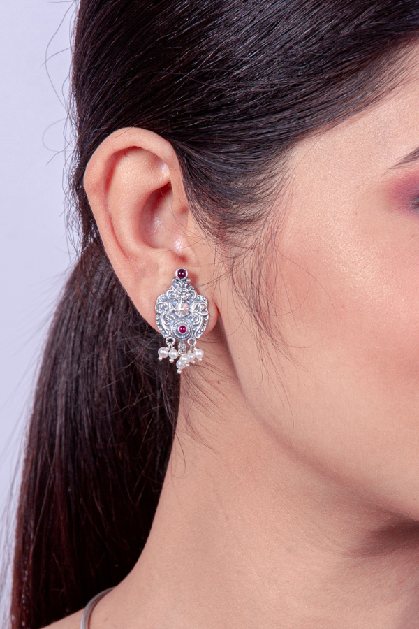 Material: 925 silver (Oxidized), red (spinal ruby), pearls.