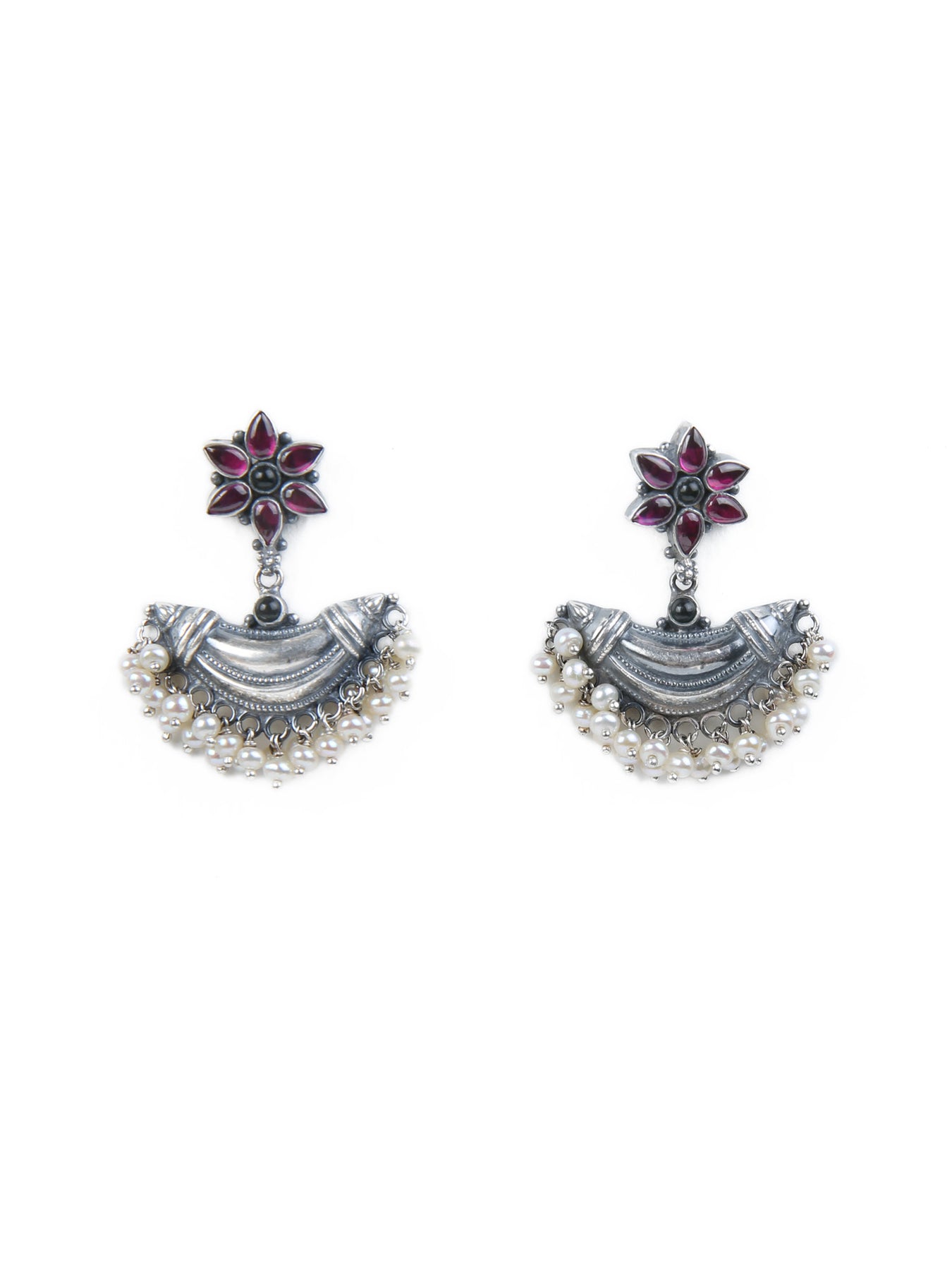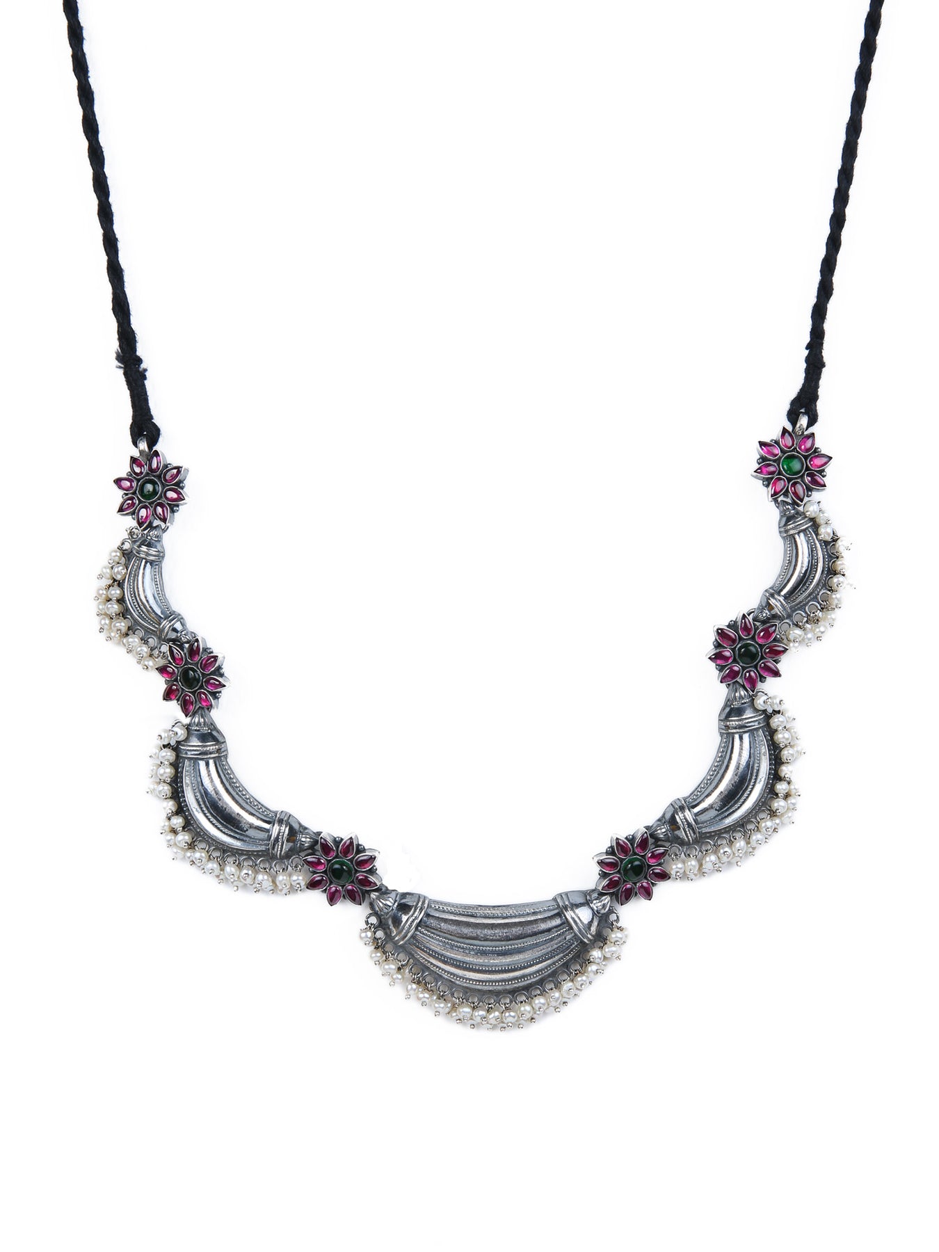 Material: 925 silver (Oxidized), red kemp, green emerald, pearls.