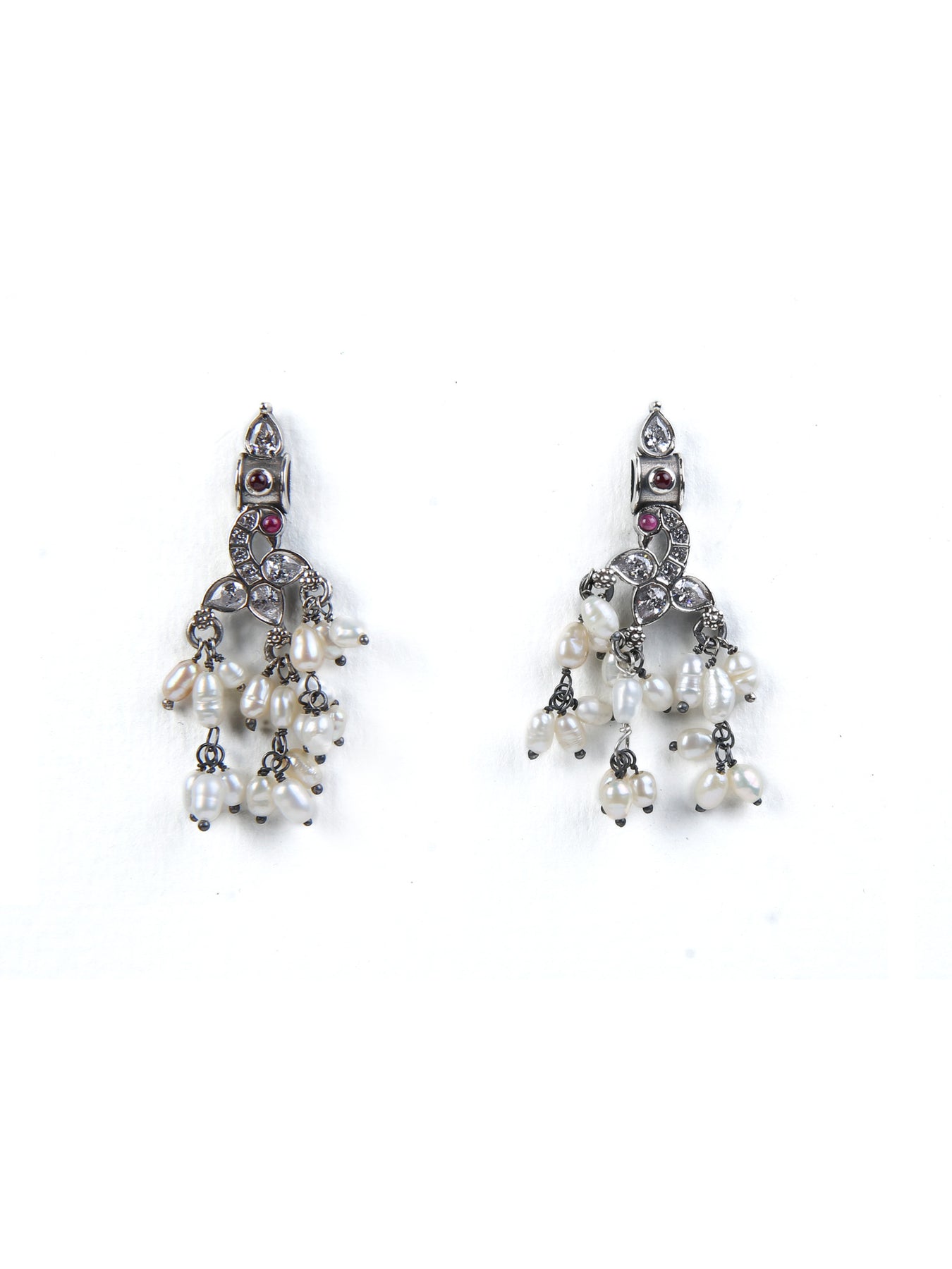 Material: 925 silver (Oxidized), red kemp, white zircon, rice pearl.