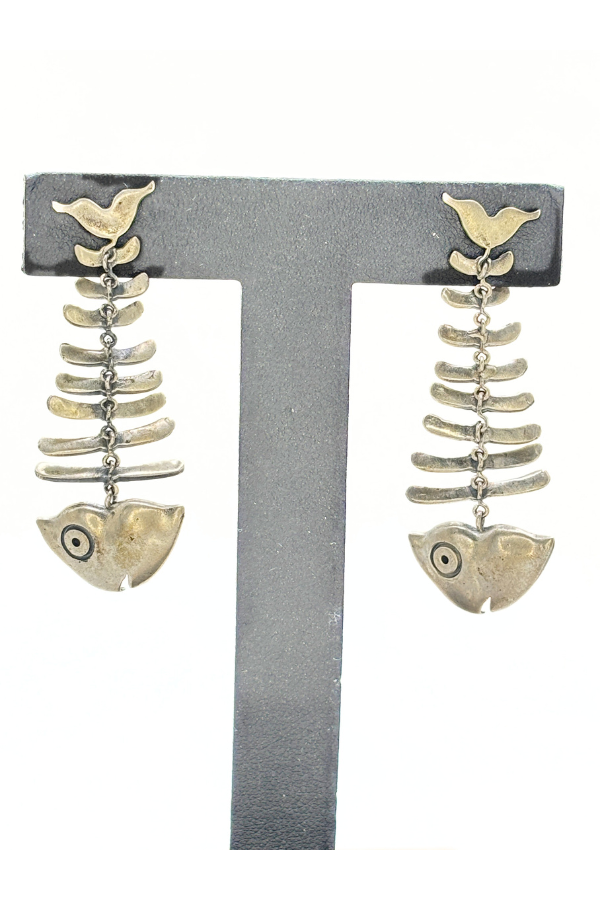 Fish bone earring - 925 silver oxidized