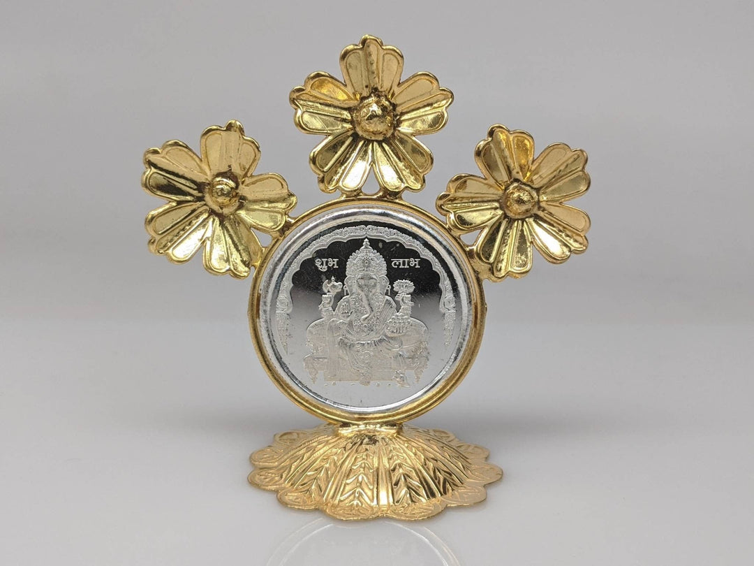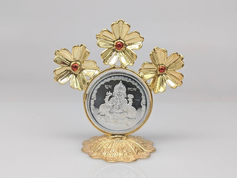 30 gram Ganesha coin with flower holder- pure silver gift items- silver items for home, return gift for navarathri, wedding and housewarming