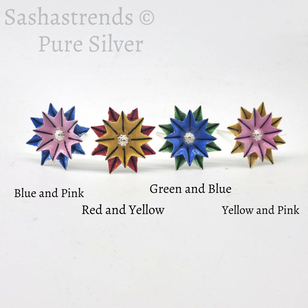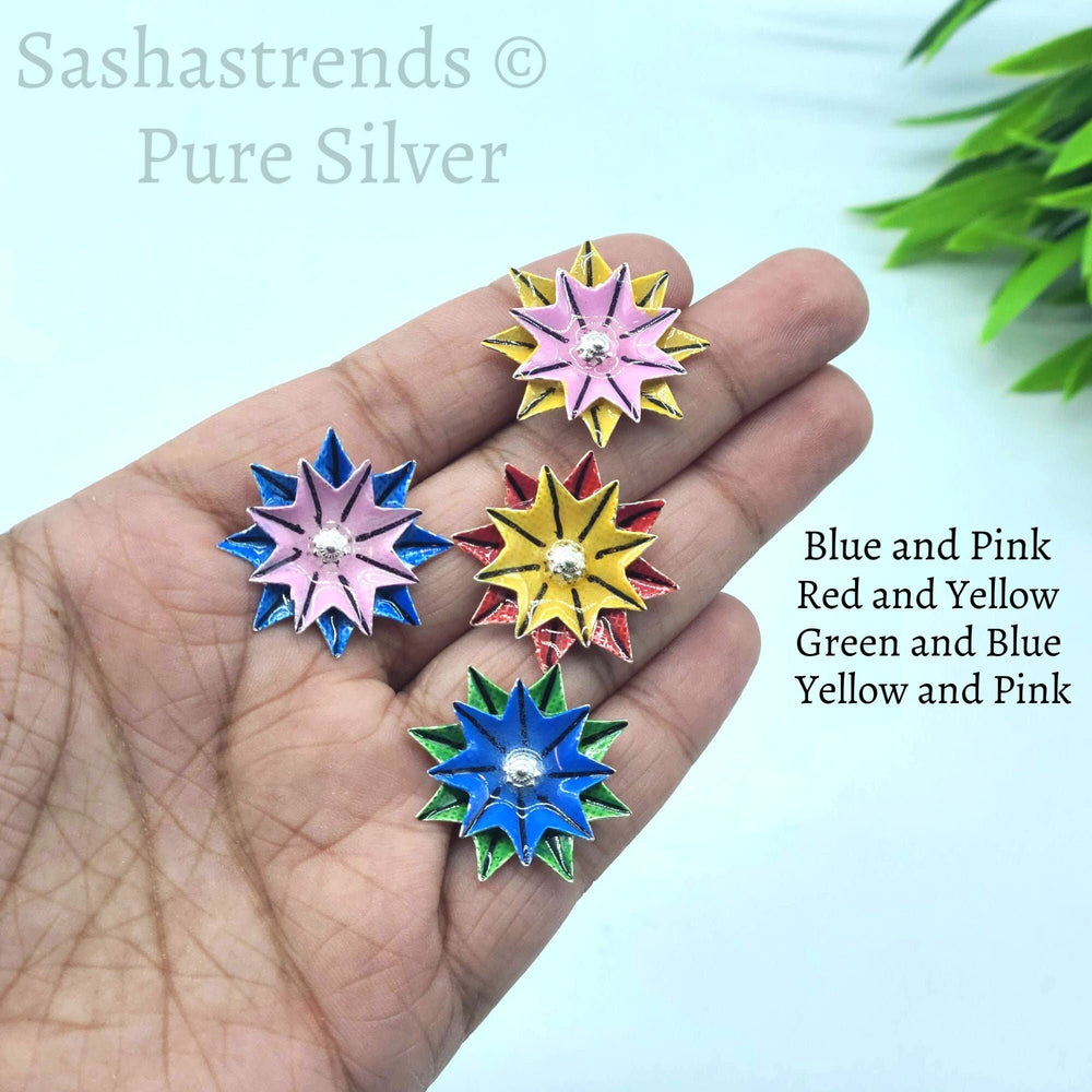 Enamel silver flower- pure silver gift items- silver pooja items for home, return gift for navarathri, wedding and housewarming
