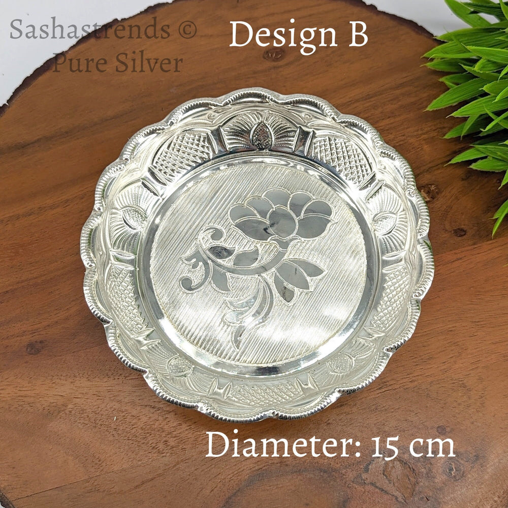 Pure silver plate -15 cms diameter- Silver pooja plate - pooja items for home, return gift for navarathri, wedding & housewarming