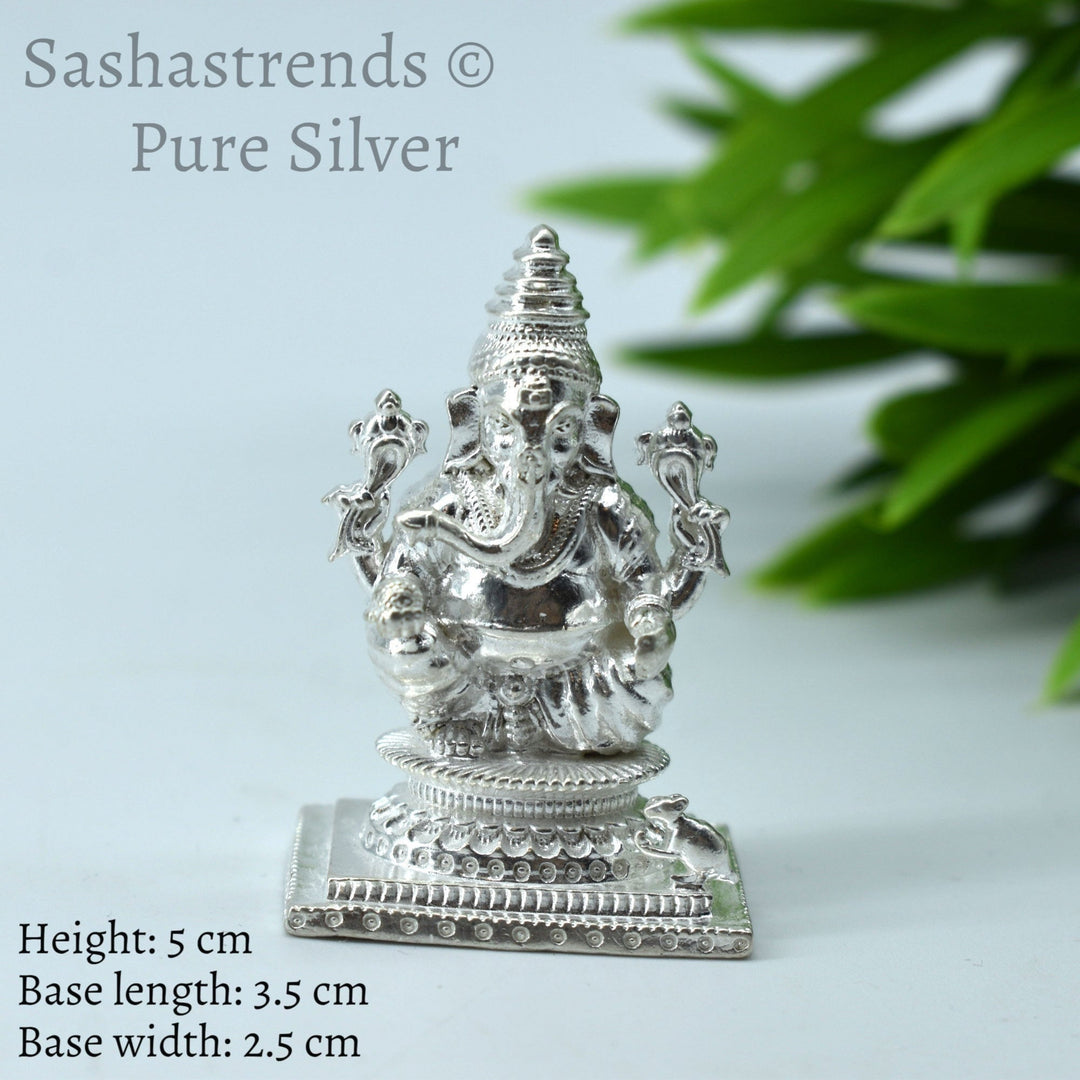 Pure silver statue - 925 silver solid Ganesha idol seated on Peeta- 925 silver gift items - silver return gift for Navratri & housewarming