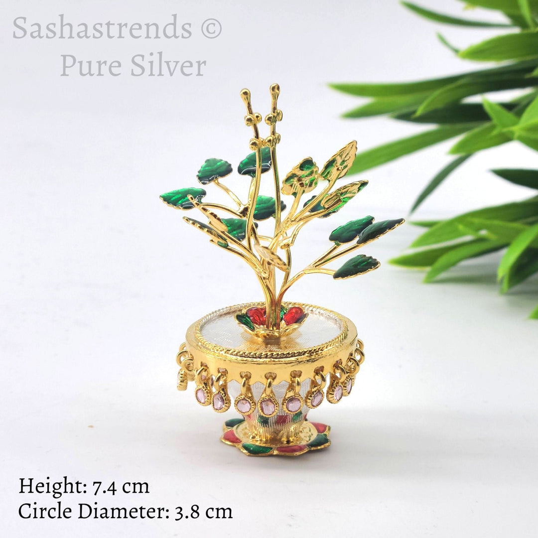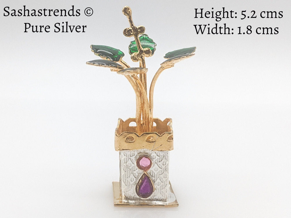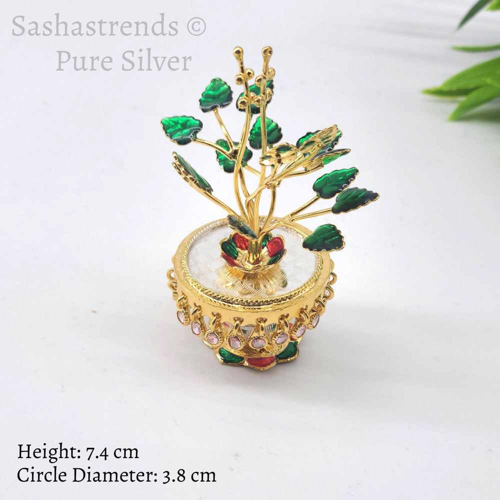 Tulasi plant with beautiful enamel -pure silver gift items- pooja items for home, return gift for navarathri,wedding & housewarming