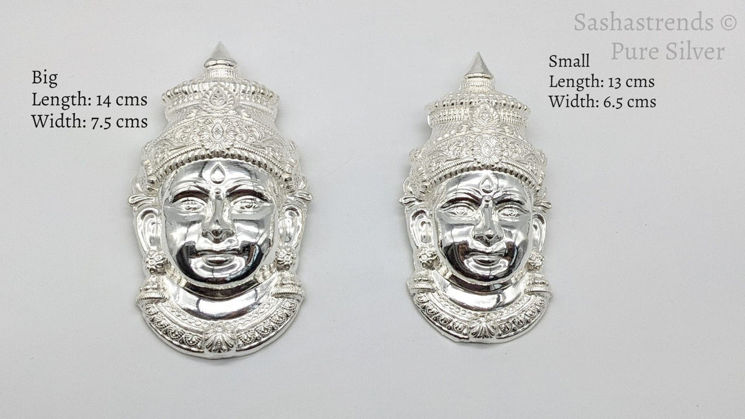 Silver Varamahalakshmi Amman face-Shiny finish- Pure Silver Pooja Items for Home, Return Gift for Navarathri, Wedding & Housewarming