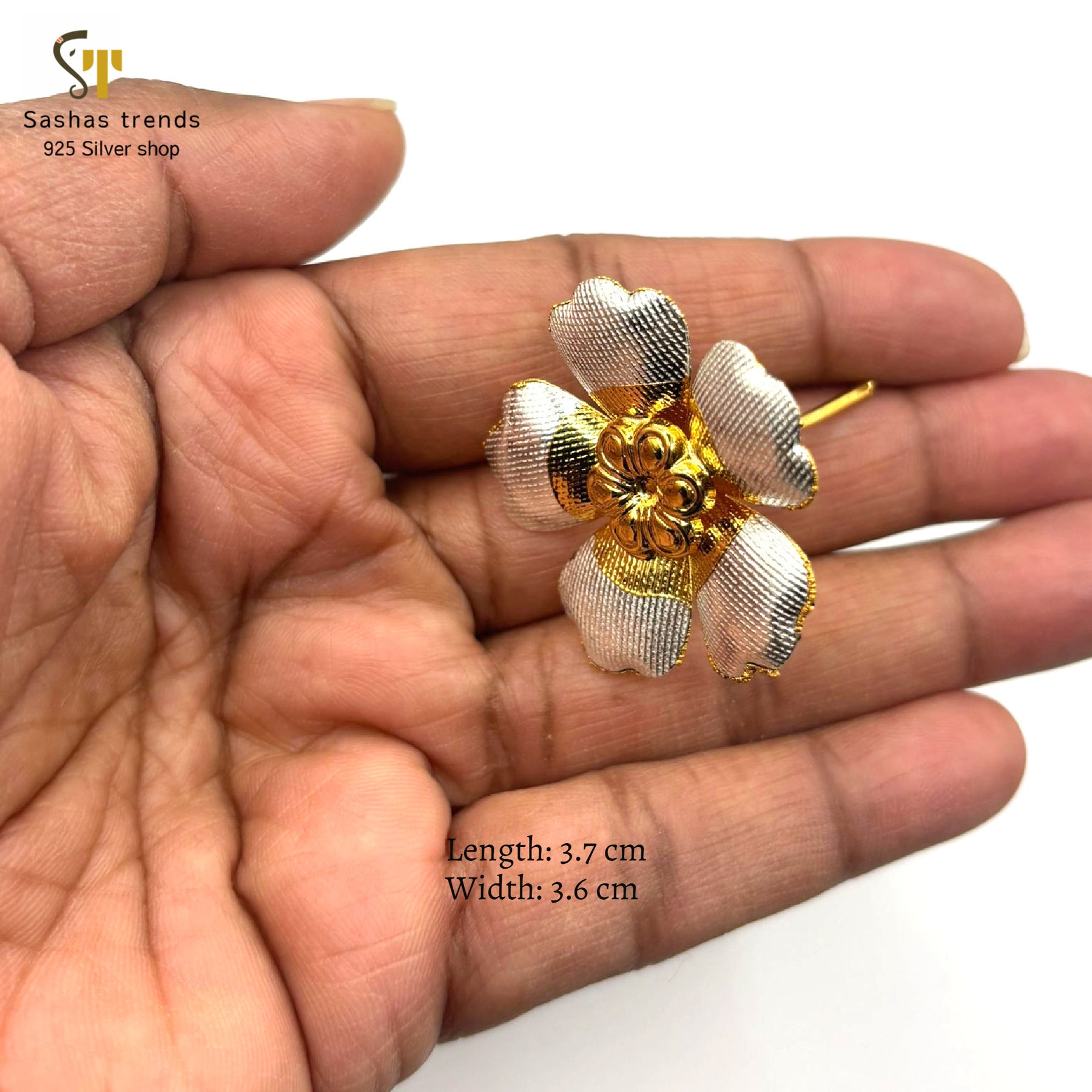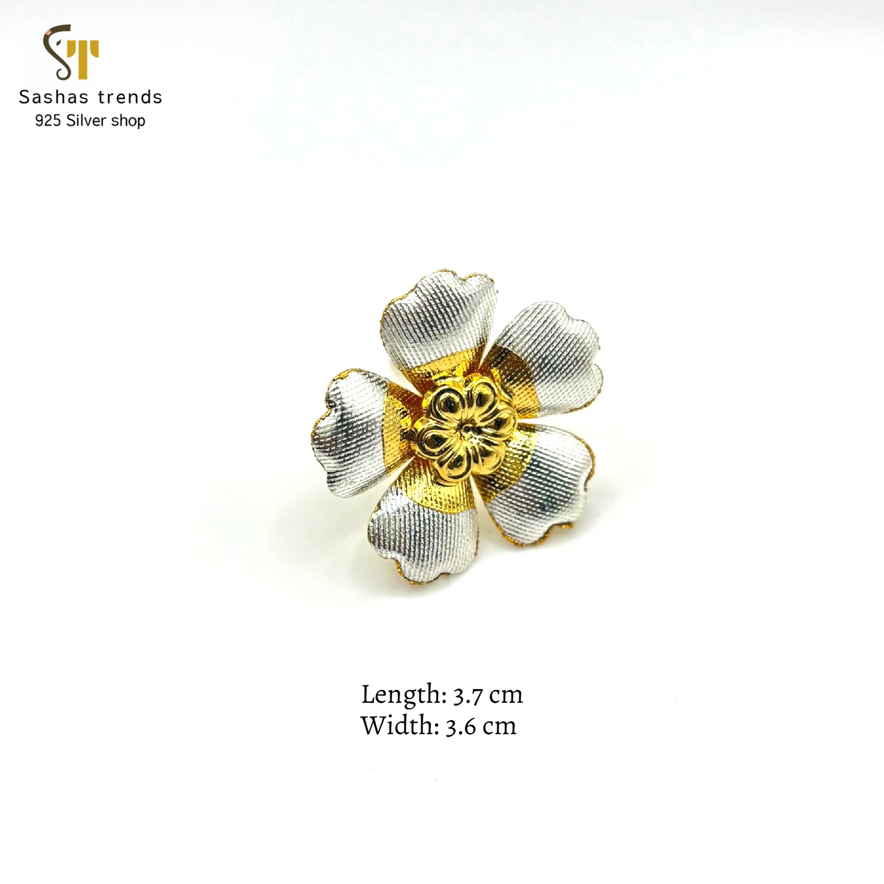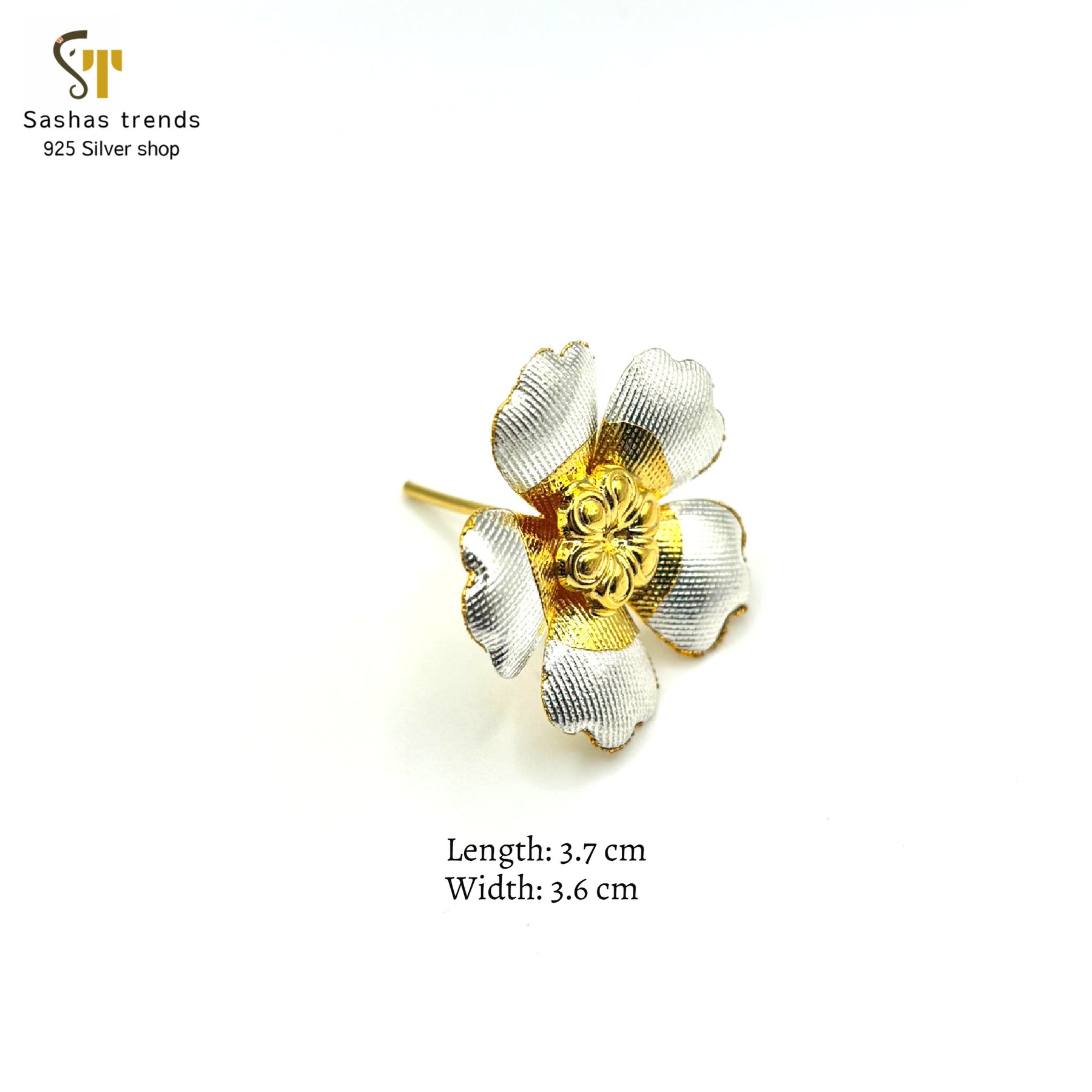 This pure silver flower, showcasing blooming petals with a gold polish finish in silver, is an ideal choice for Pooja ceremonies. It enhances the deity's decor beautifully and is a delightful addition to your collection of silver articles for your Pooja room.