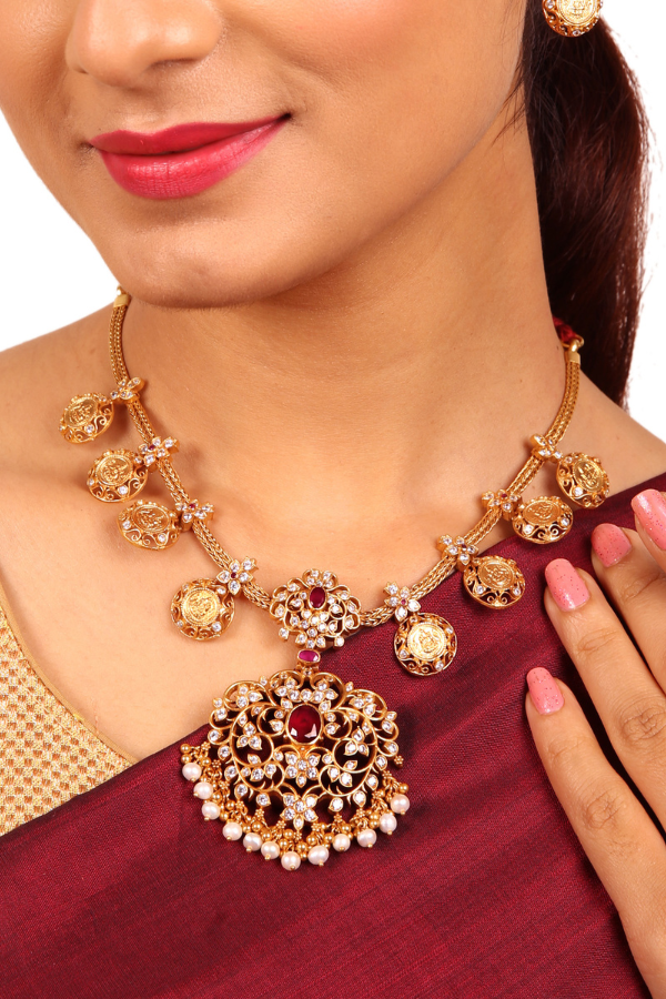 Gauri Necklace-925 silver-Gold polish-Temple-wedding jewelry